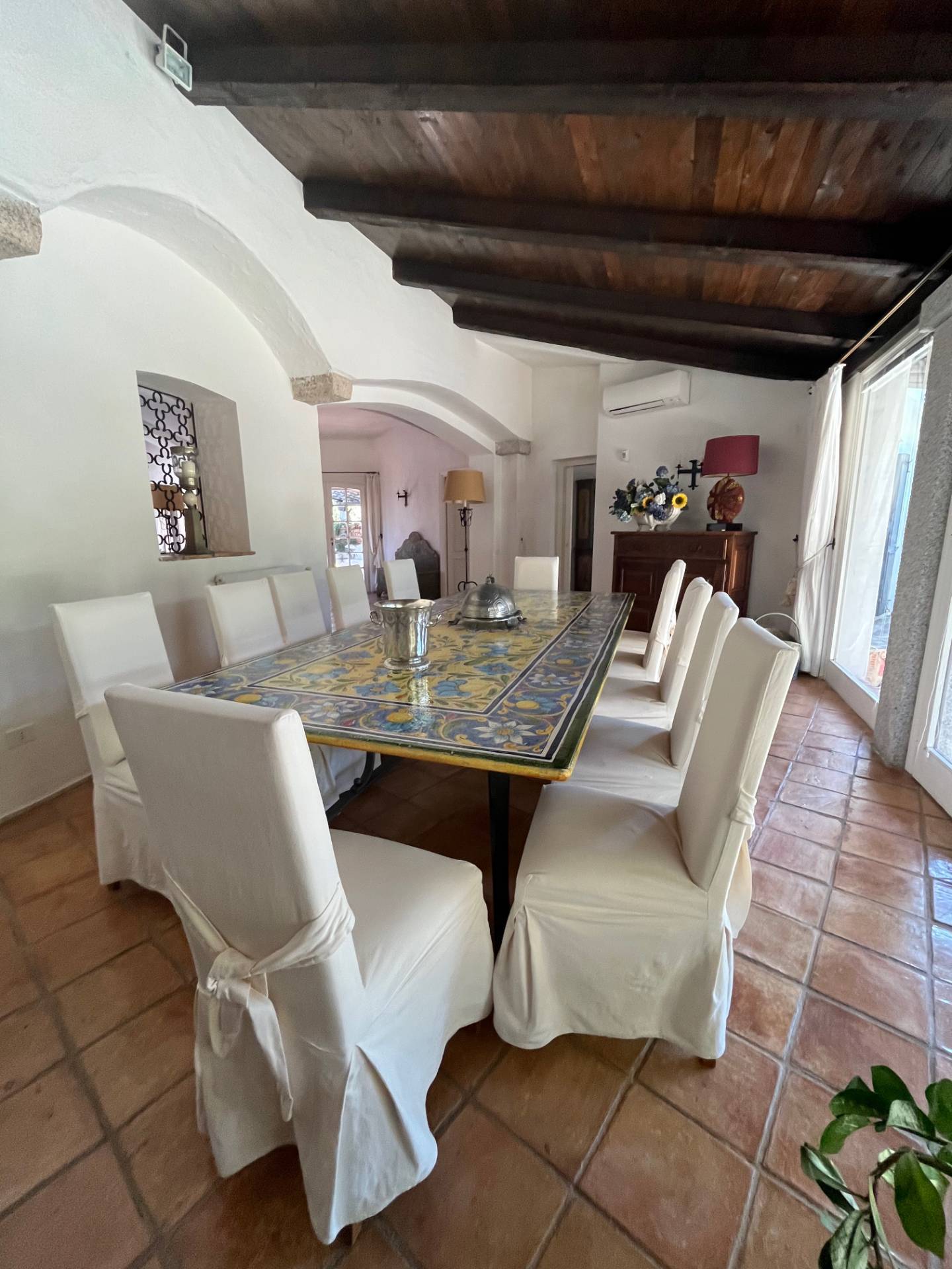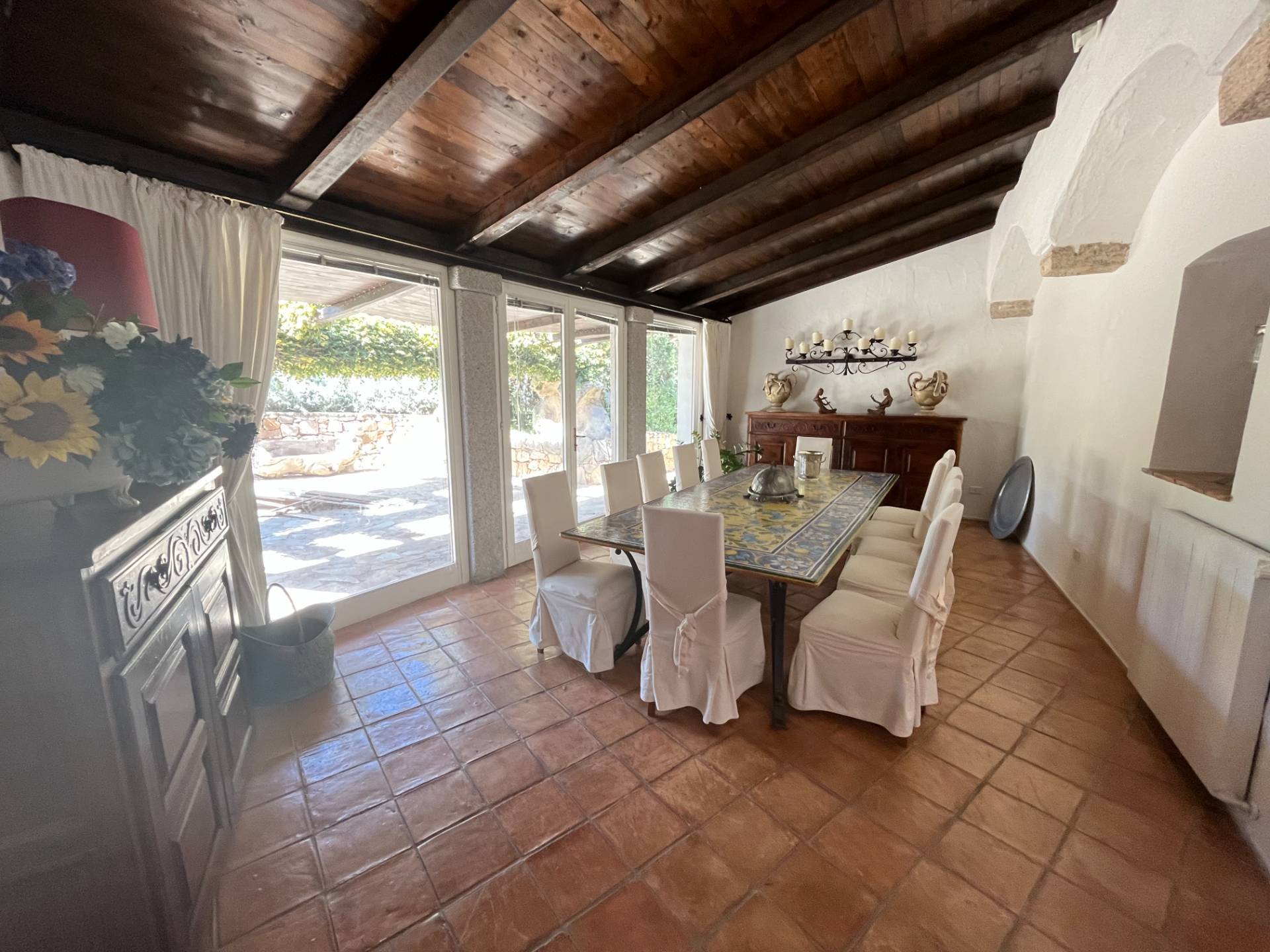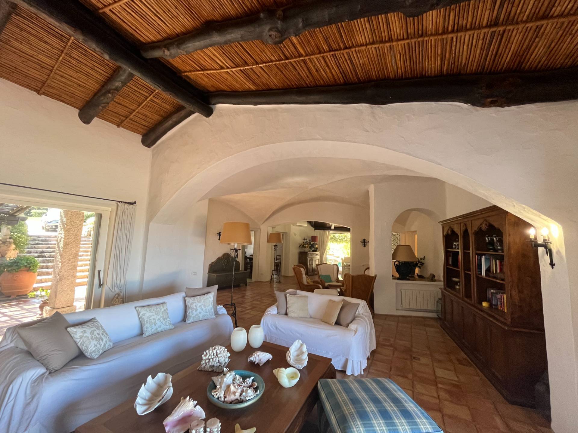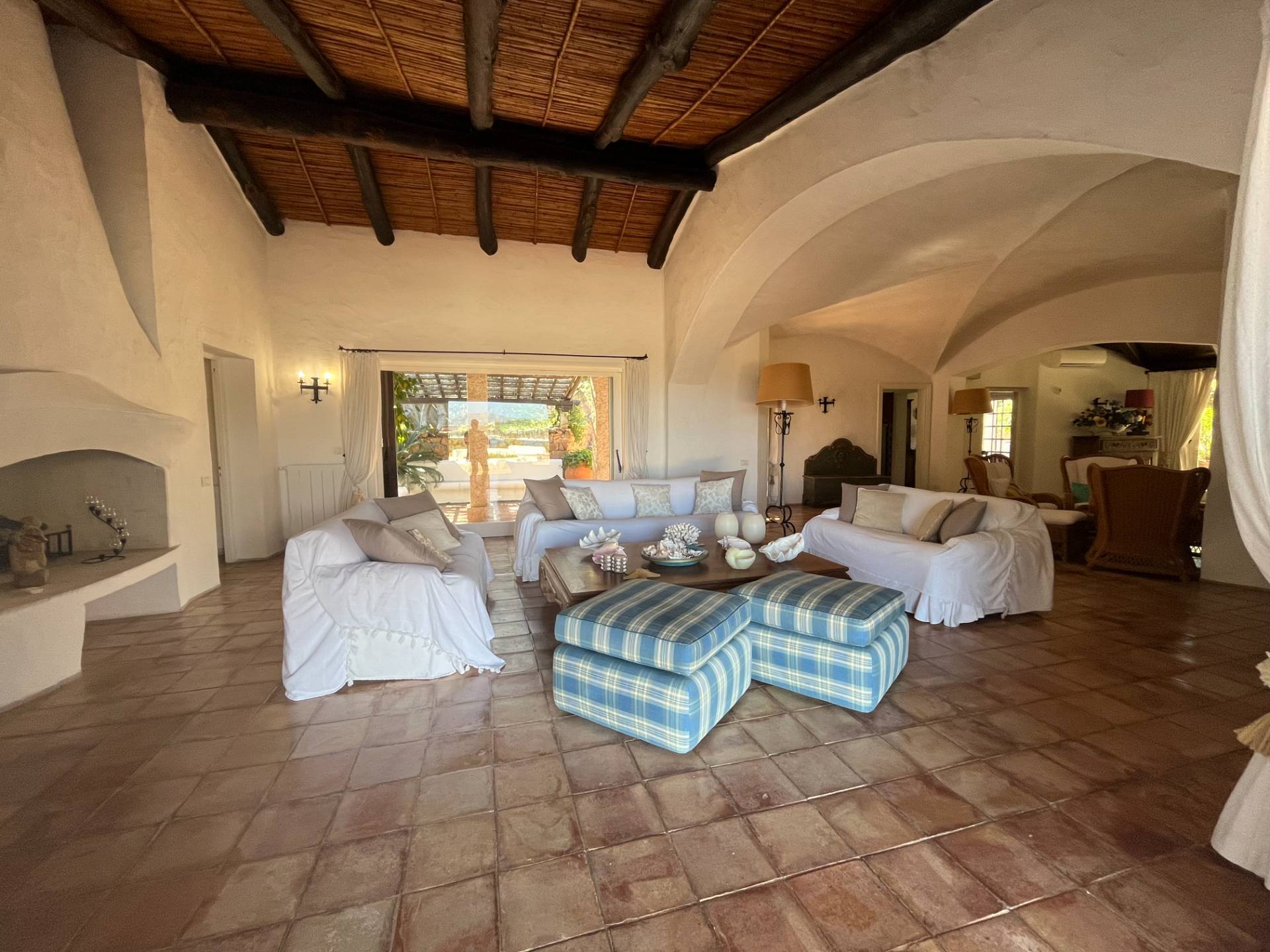 All’interno, i 700 mq di superficie fondono il fascino tipico sardo con il lusso moderno. Le iconiche vetrate a tutta altezza inondano di luce il salone e la zona pranzo, offrendo una vista mare senza eguali. La villa dispone di 7 raffinate camere da letto, ciascuna con bagno en-suite e aria condizionata. All’esterno, ampie terrazze porticate, una zona barbecue e la splendida piscina a sfioro creano l’ambiente perfetto per il relax totale.